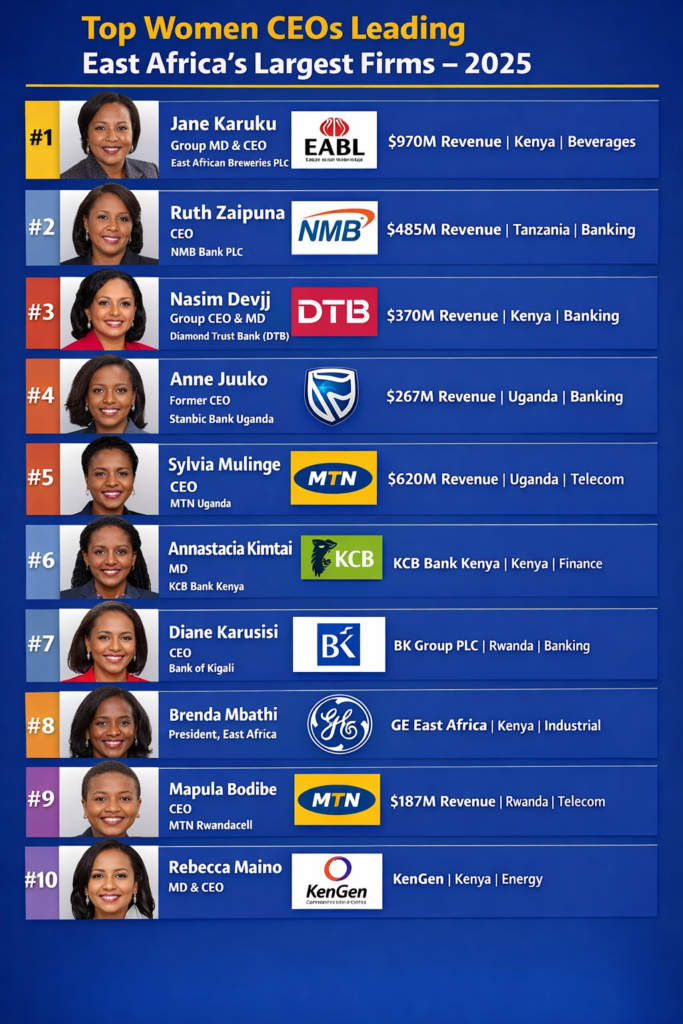 As a result, the final ranking reflects not only individual leadership strength but also the overall performance and positioning of the organizations they lead. Moreover, this balanced methodology allow📊 10 Top Women CEOs in East Africa (2025)