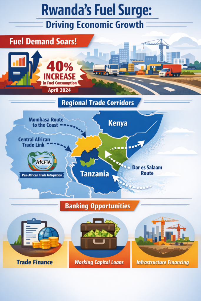 Rwanda’s fuel demand jumps 40%, boosting industrial activity, logistics, and banking opportunities across East Africa
